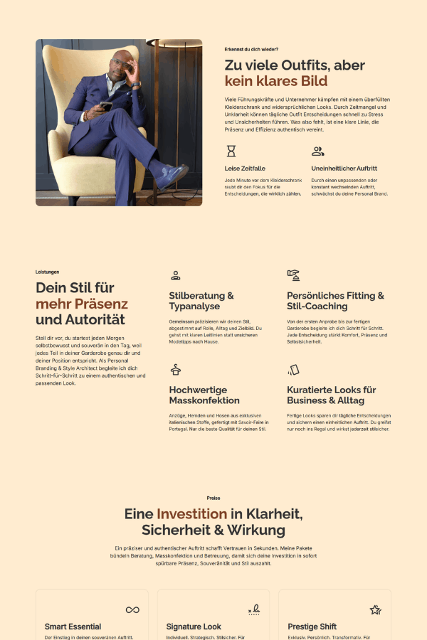 Claude wollte sich als Personal Styling Architect selbständig machen und wusste, um seine anspruchsvolle Zielgruppe zu überzeugen, braucht es eine hochwertige Webseite, die ihn authentisch und glaubwürdig widerspiegelt.
