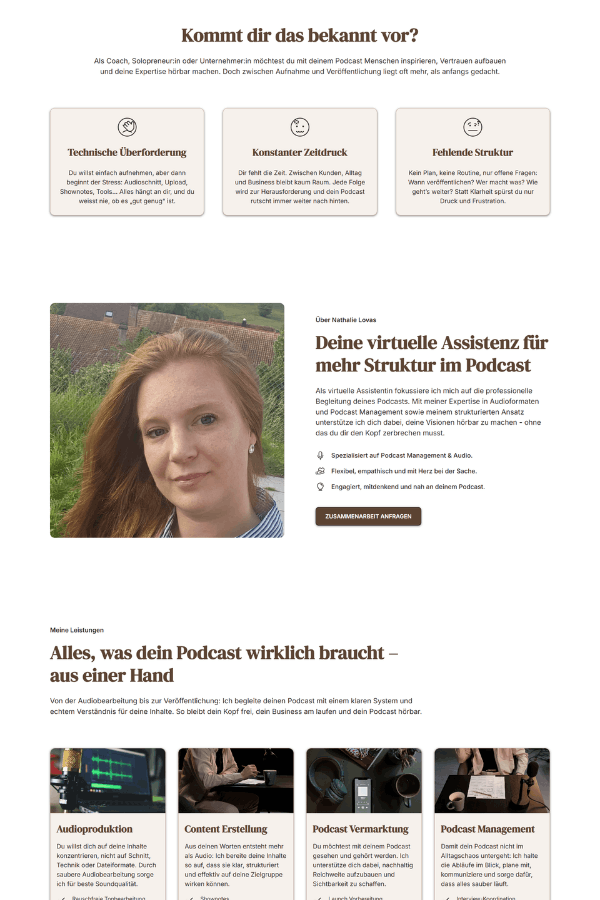 Nathalie wollte sich als virtuelle Assistentin selbständig machen, um mehr Zeit mit ihren Kindern zu verbringen. Hierfür wollte sie eine professionelle Webseite, mit der sie ihr Angebot präsentieren kann, auf Google sichtbar ist und schlussendlich ihre Wunschkunden überzeugt.